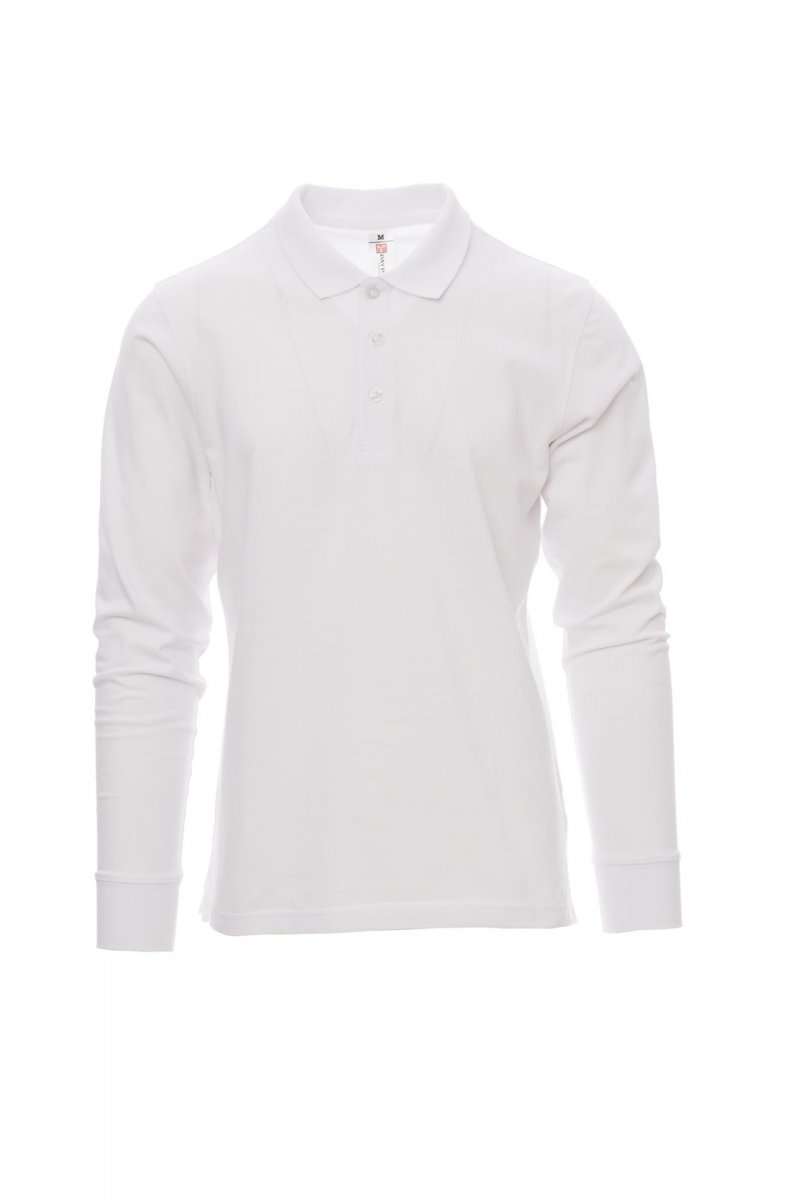 Polo da uomo a manica lunga con 3 bottoni in tinta effetto perlato, colletto e polsino a costine, spacchetti laterali, cuciture del collo coperte con nastro in tinta, cuciture stretch, nastro di rinforzo laterale.