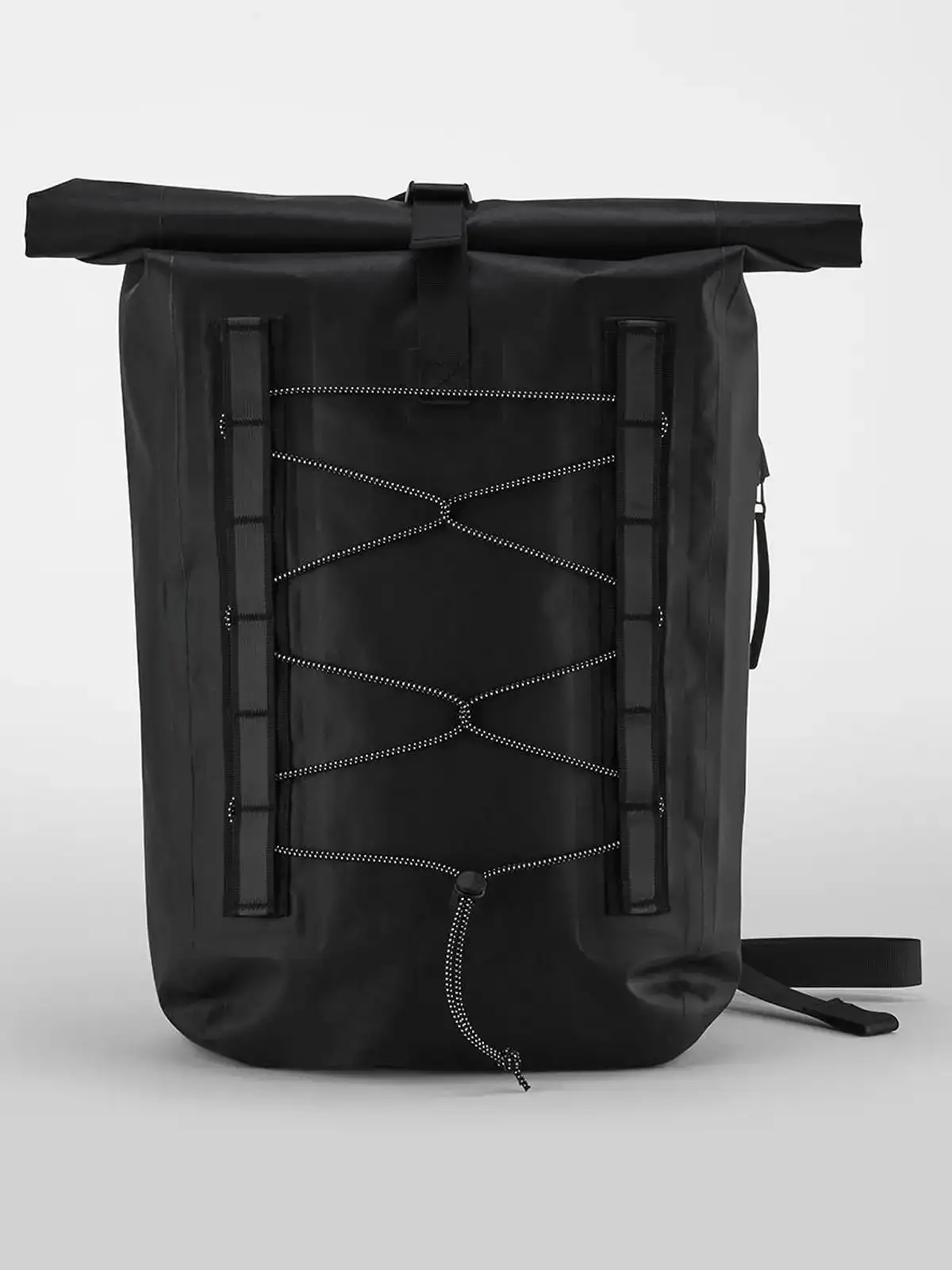 100% poliestere riciclato. Zaino con chiusura roll-top, tessuto impermeabile, cinghie in tessuto con dettagli riflettenti, scomparto principale impermeabile, inserti frontali elastici, tasca laterale con zip, spallacci imbottiti e regolabili. Dimensioni: 31x12.5x46cm, Capienza: 18 litri. Etichetta strappabile.