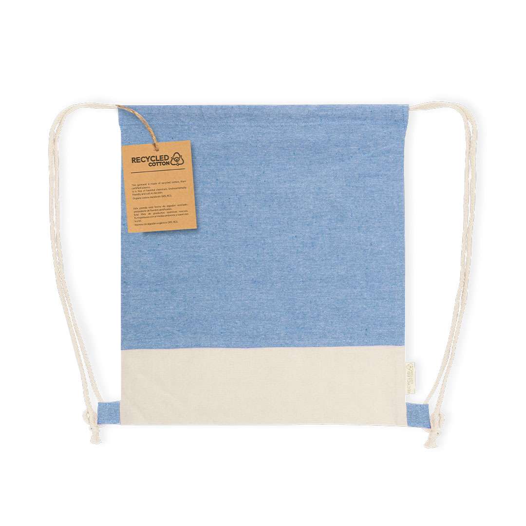 Sacca in materiale cotone riciclato da 120 g/m2. Corde auto-chiudenti in cotone con passanti in tessuto. La base è in colore naturale in tinta con le corde, con il logo eco visibile sull'etichetta laterale. Disponibile in una gamma di colori naturali. Resistenza fino a 6 kg di peso.